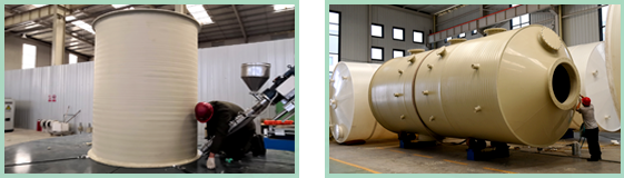 按照PPH錐形抽出盤圈技術應用手工加工做而成的全塑構成的耐酸堿不銹鋼塔器或臥式儲槽儲槽;結合在一起了細木工板二級定型的舊加工。